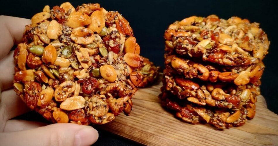 These nutrient-packed, flourless, and sugar-free cookies are perfect for a healthy snack or an energy boost. Packed with nuts, seeds, and a touch of natural honey, they provide a delicious way to enjoy an energy dessert without any processed ingredients.